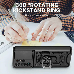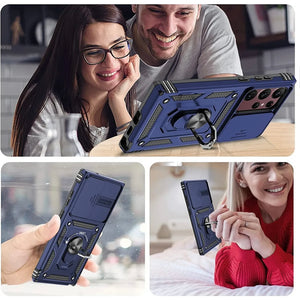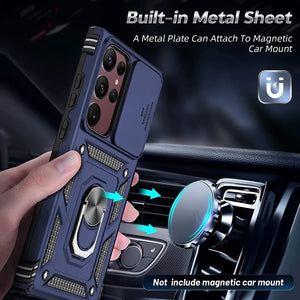 ”High quality tough armoured back phone case, functional & effective protection! with built in Camera slide protection, stand and magnetic compatible  ”
